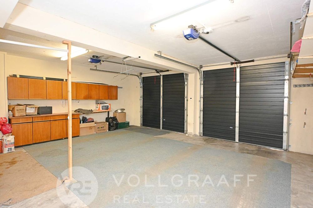 Downstairs features a bedroom with an adjacent bathroom, a washing room, and a guest toilet as well as the garages.